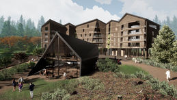 Project: "OSTARA Waldresort Oberhof" Forest Resort, Biohotel with 14 holiday homes. The hotel complex consists of 3 parts: "Holzbogen" as the main building with 60 rooms, 5 holiday apartments, and spa and fitness areas, the "Kristall" pavilion with a cafeteria, and 14 forest microhouses as a modular wooden system.